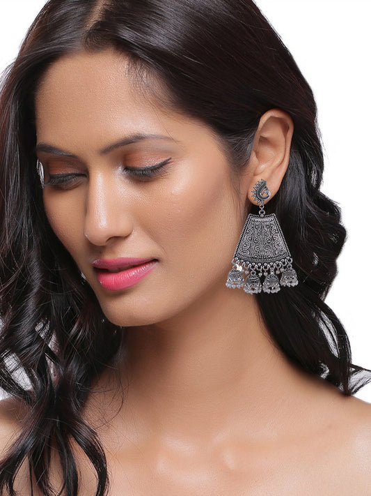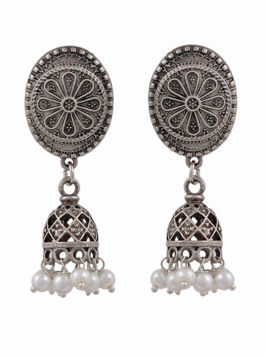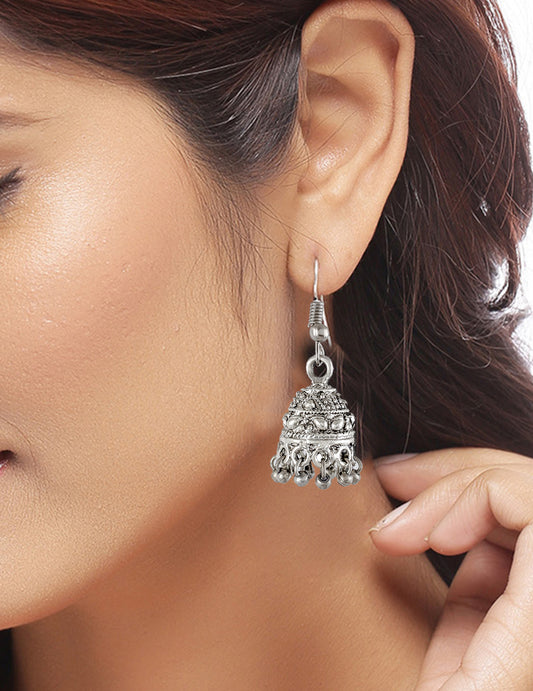 Silver Plated Oxidised Traditional Jhumka Earrings For Women