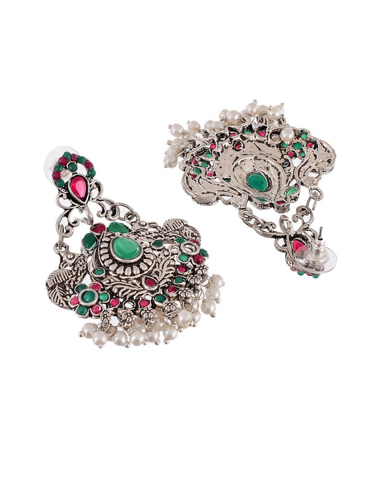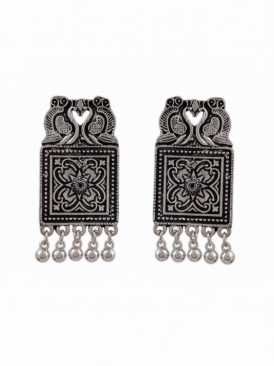 Silver Plated Oxidised Indian Peacock Jhumka For Women