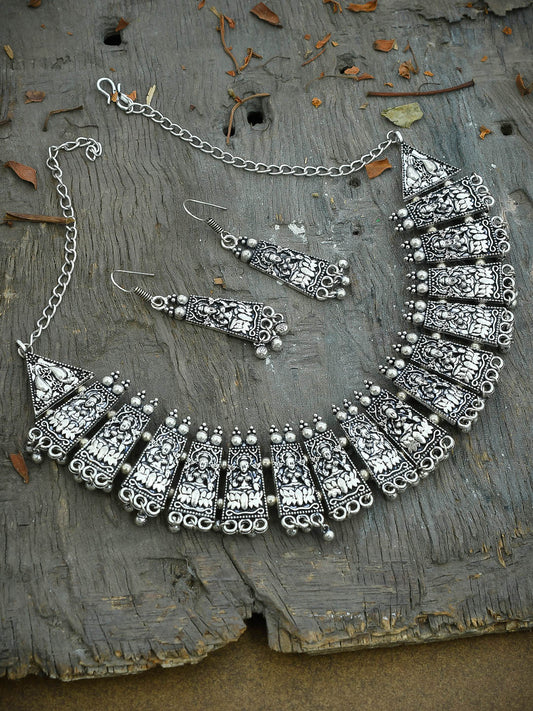 Trendy Oxidised Silver Plated Lakshmi Statement Necklace