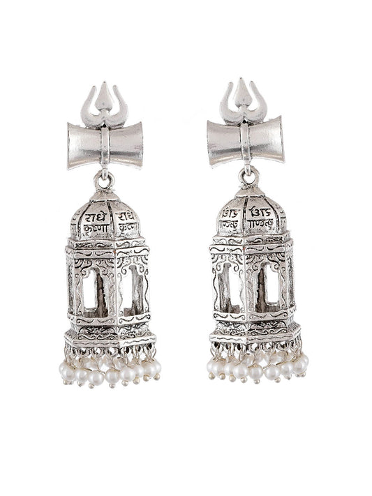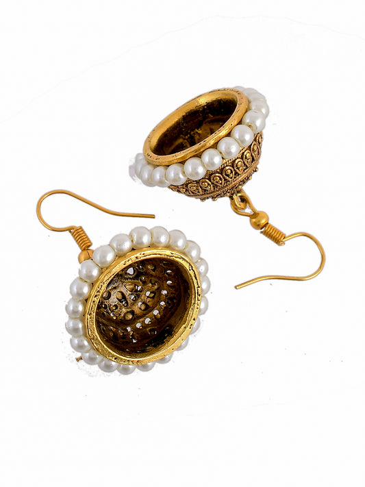 Gold Plated Pearl Oxidised Jhumka Earrings For Women