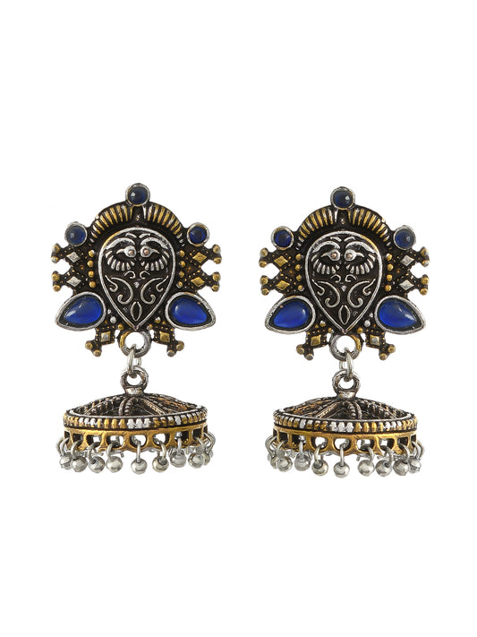 Blue Stone Ethnic Oxidised Silver Jhumka For Girls
