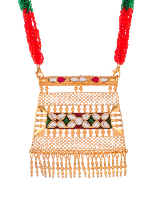 Gold Plated Red & Green kundan studded gold plated necklace