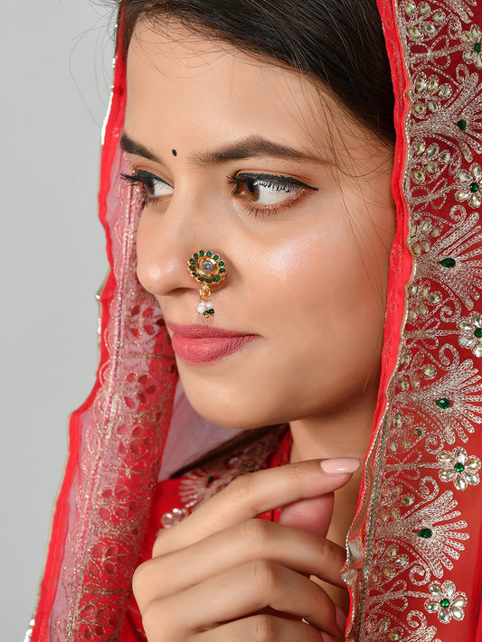 Green Gold Plated Meenakari Besar Nose Pin