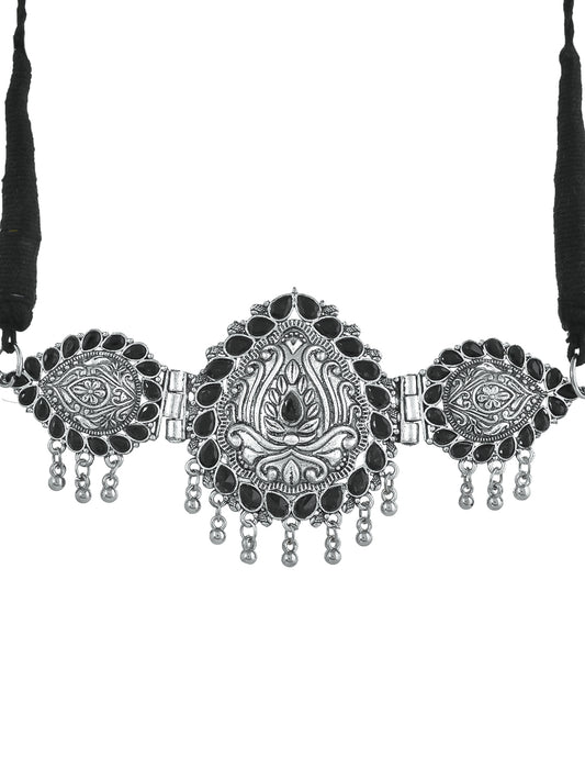 Oxidised Silver Statement Hasli Necklace Set With Earrings