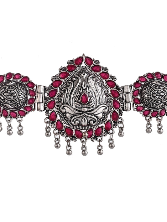 Pink Traditional Oxidized Silver Plated Designer Jewelry Set For Women
