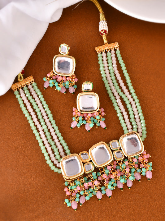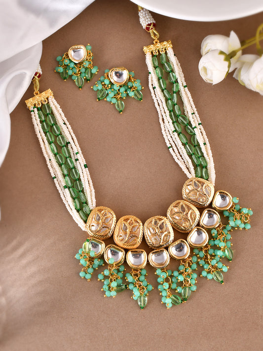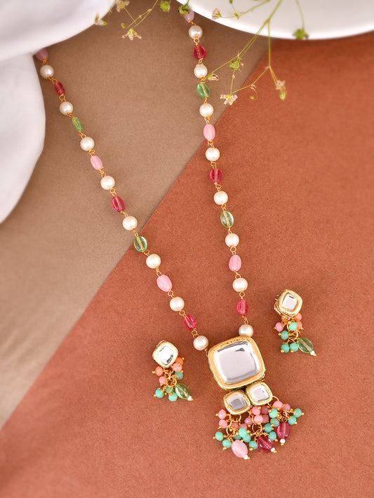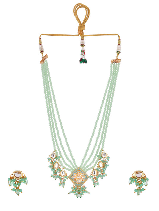 Long Layered Multi Beaded Kundan With Pearl Jewellery Set For Women