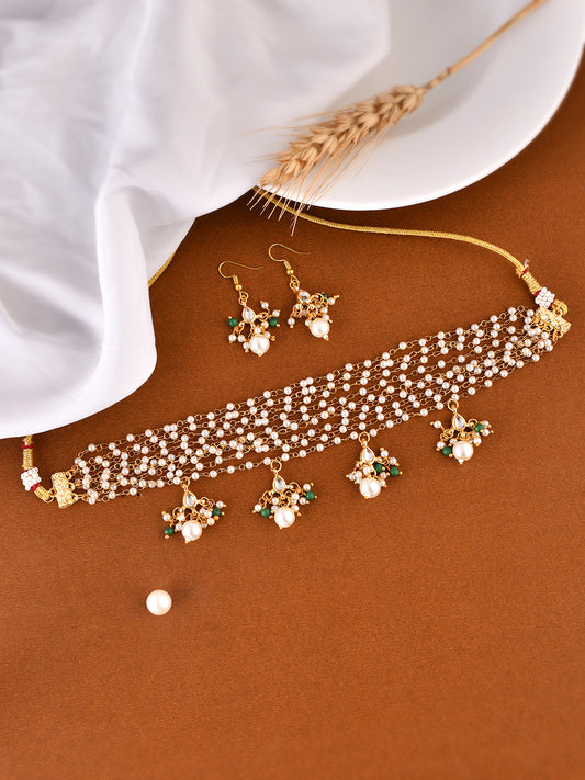 Stylish Pearl Kundan Choker Necklace Set For Women
