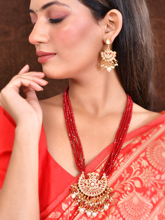 Kundan Pendant Red Jewellery Set With Earrings For Women