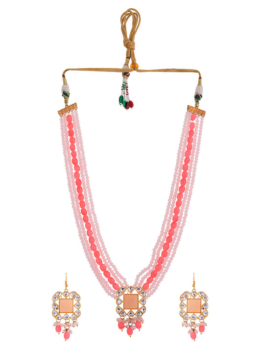Gold Plated Pink Beads Kundan Bridal Jewellery Set