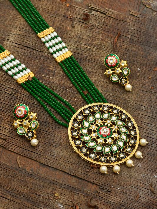 Gold Plated Beads Meenakari Kundan Jewellery Set For Women