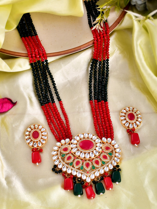 Gold Plated Kundan Long Layered Jewellery Set For Women