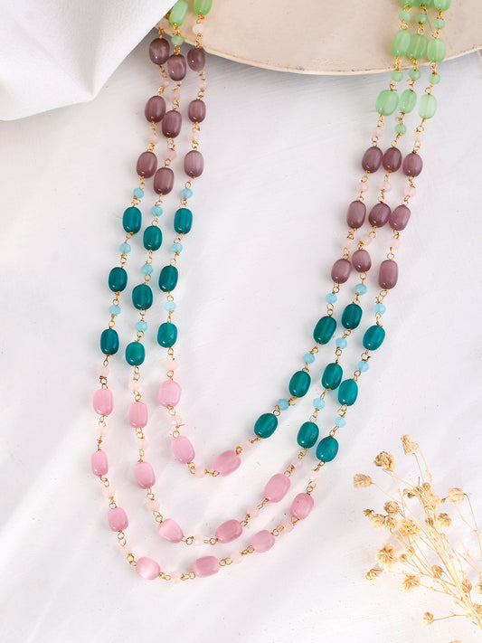 Multi Layered Beaded Necklace Handcrafted With Pink Beads For Women & Girls