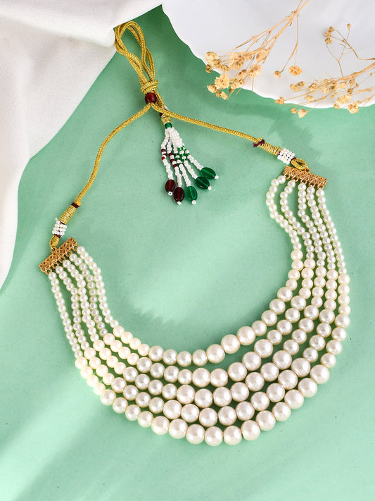 Multi Layered White Pearl Beaded Necklace For Women & Girls