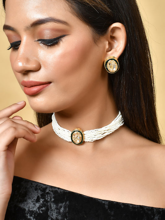 Pearl Kundan Mother of Pearl Jewellery Set: