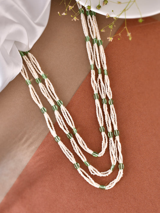Multi Layered Pearl and Green Bead Necklace For Women & Girls