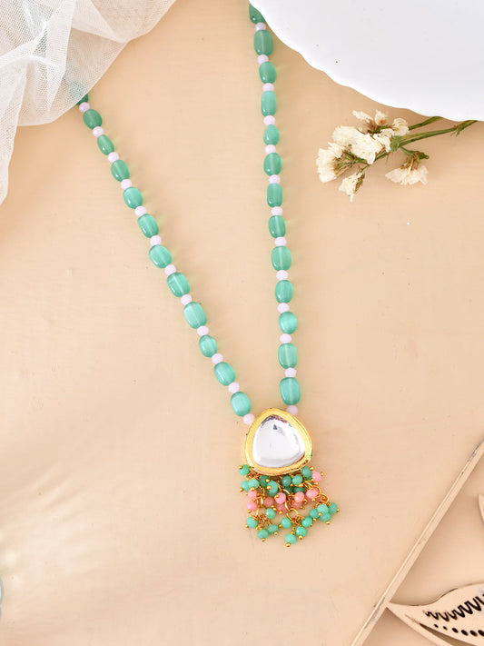 Floral Pendant Necklace With Green Beads | Pearls Jewellery For Women