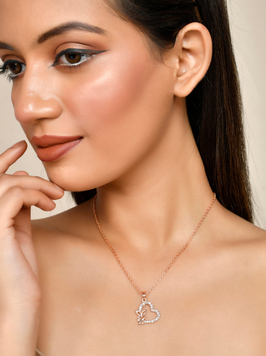 Rose Gold Plated Double Heart Pendant Chain For Women
