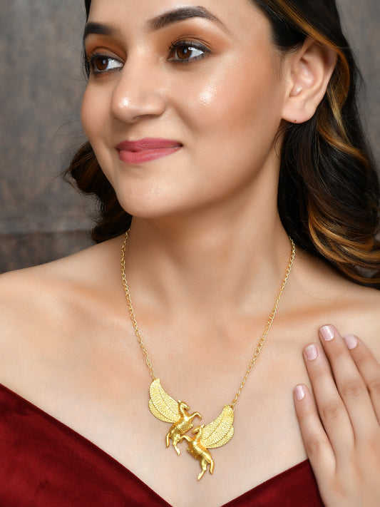 Brass Handcrafted Horse Design Pendants Gold Plated Necklace