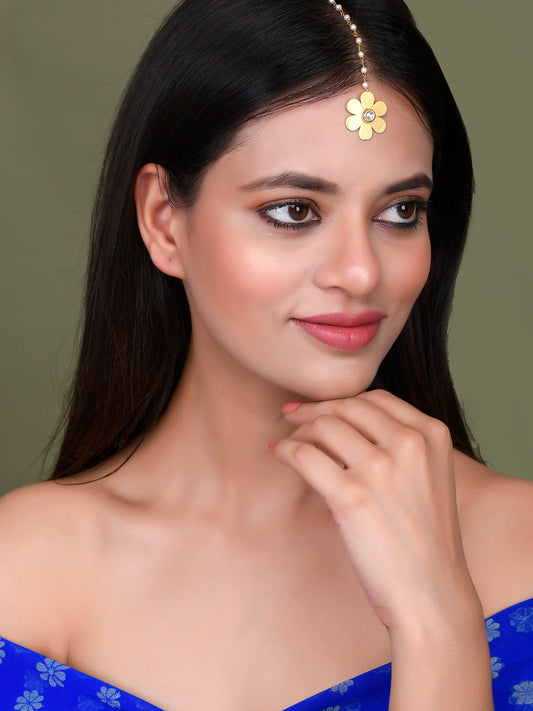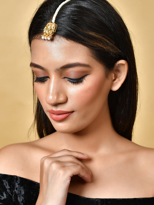 A Maang Tikka or Matha Patti, often known as rakhdi that provides your lehenga a traditional touch, will finish your bridal look.
