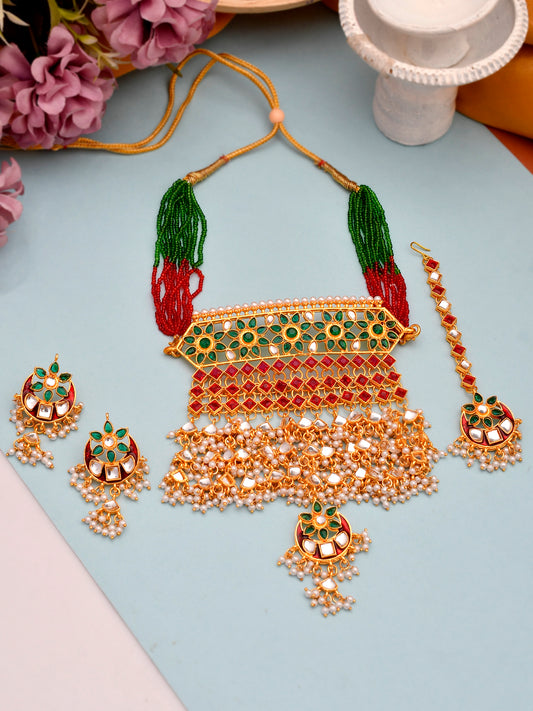 These sets, which combine the beauty of gold with the delicacy of pearls, are perfect for individuals who like an elegant look. These rajputi full jewellery set are versatile and match perfectly with both modern and traditional outfits.