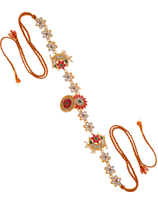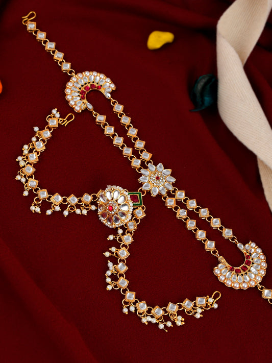 Rajputi Gold plated jewellery sets have become known for their gorgeous look. Typically, these sets come with a necklace, earrings sometimes extra items like bracelets or a Maang Tikka. They feel rich because of the gold plating, which makes them perfect for special occasions like weddings. Rajputi aad are quite prominent.