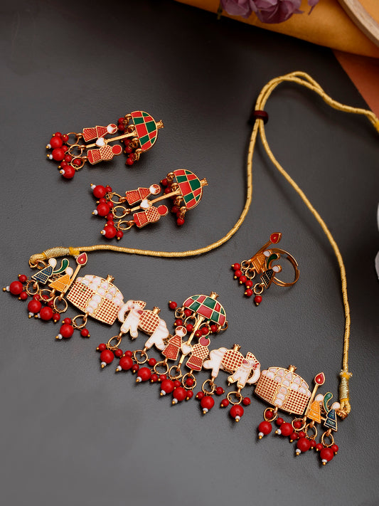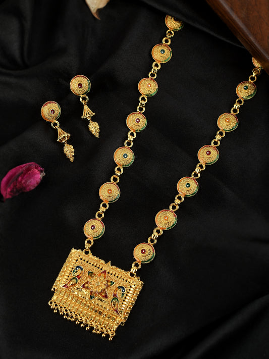 Gold Plated Meenakari Handcrafted Temple Jewellery Set For Women