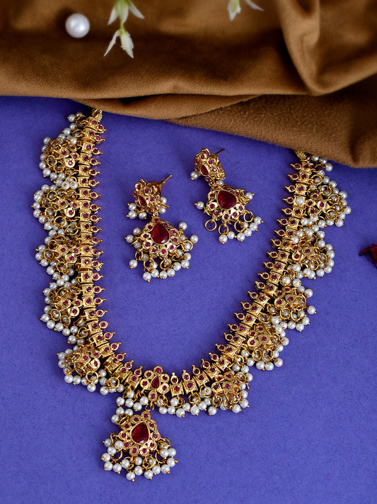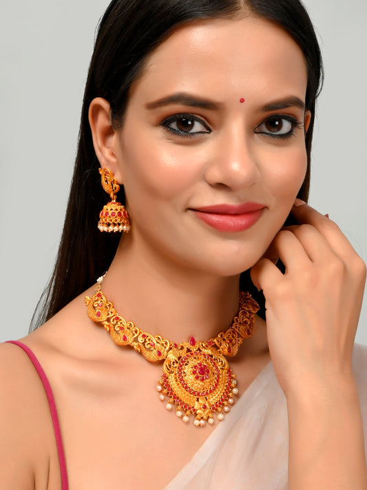 Our curated collection of Temple Jewellery Sets features a wide range of designs, each meticulously crafted to perfection. Here's a glimpse of what you can expect: