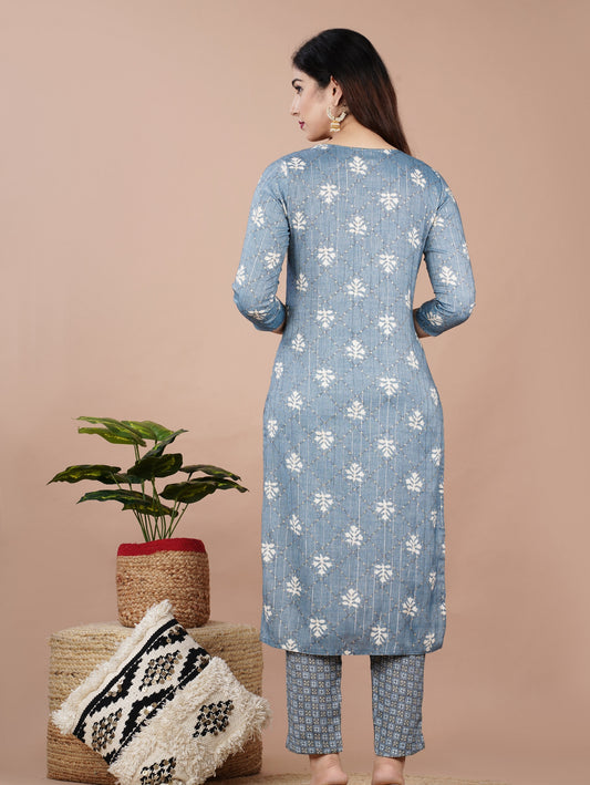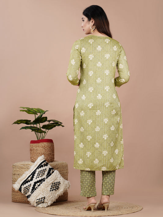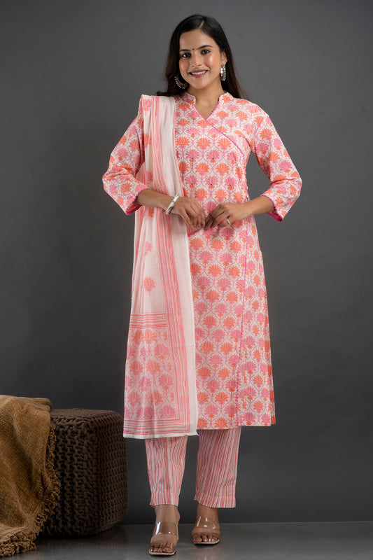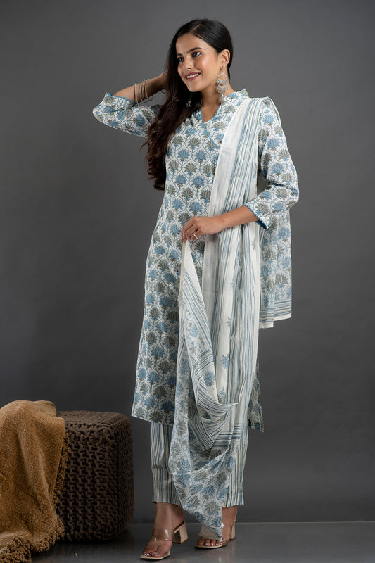 Block Print Foil Lurex Sequins Work Kurta Set with Dupatta