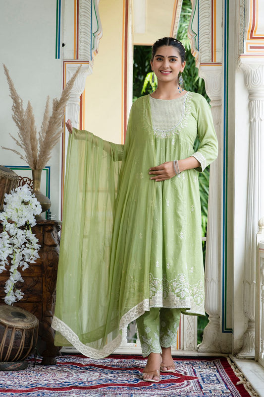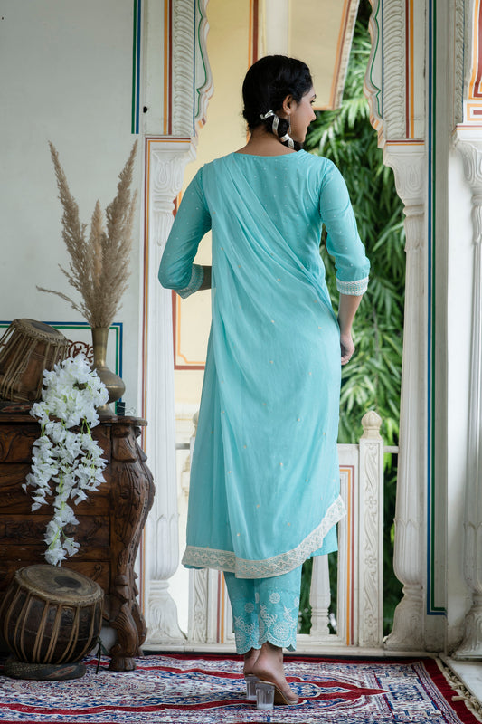 mulmul cotton zari embroider sequinced kurta Set trouser with dupatta