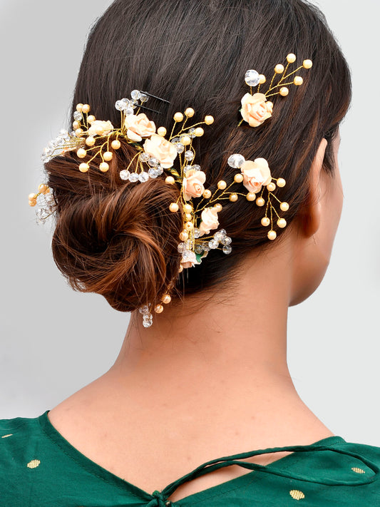 Women Cream & Gold Toned Juda Hair Accessory set