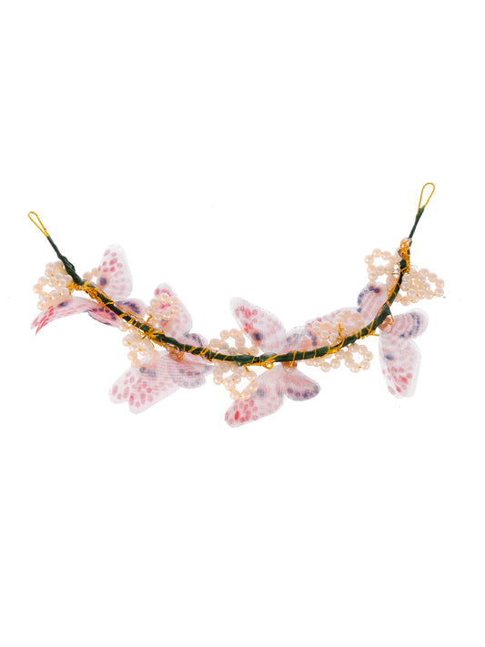 Women White & Pink Embellished Butterfly Hair Tiara