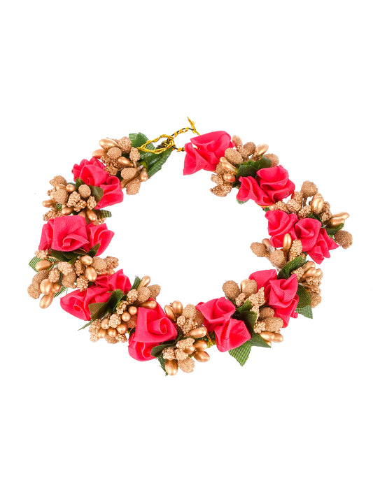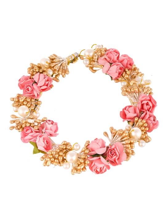 Women Pink & Gold Tone Floral juda beni Hair Accessory set