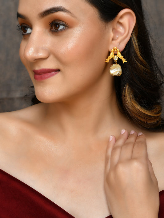 Gold Plated Contemporary Drop Earrings for western Outfit
