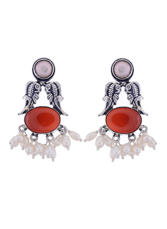 Beautiful gemstones are set in oxidised silver in these beautiful 925 oxidised silver stone earrings. These earrings will come in various styles, including simple studs to detailed danglers. Vibrant stones and oxidised metal blend to create an eye-catching design that is sure to grab attention.