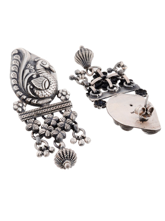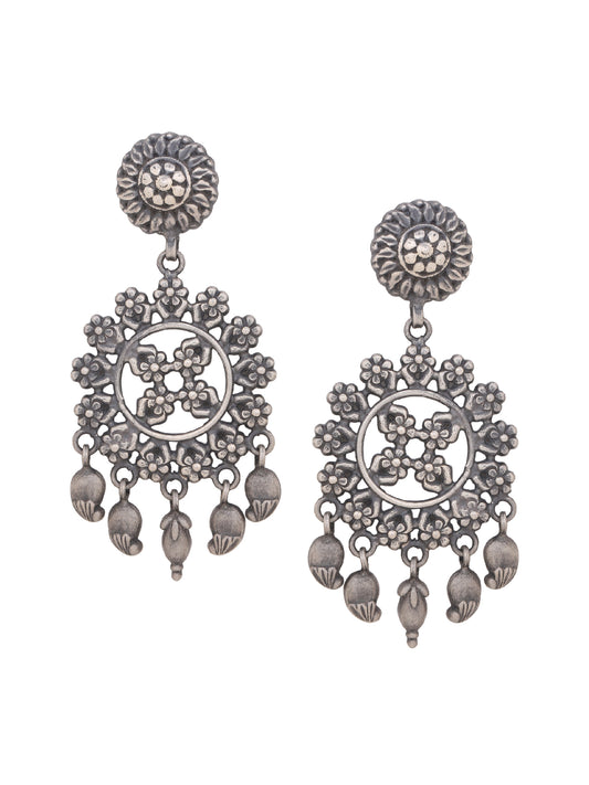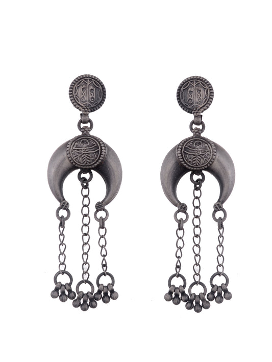 Black Oxidised Sterling Silver Chandbali Earrings For Women
