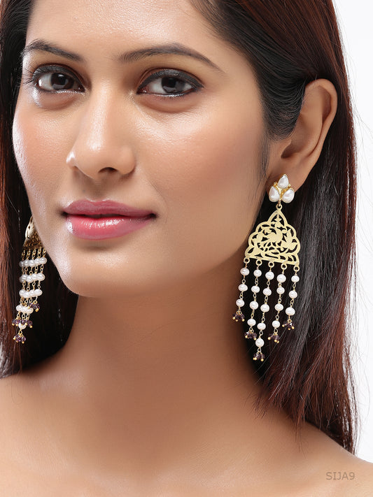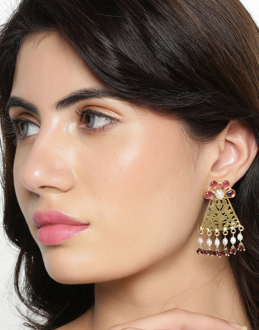 Hawamahal Kundan Pearl Gold Plated sterling Silver Earrings