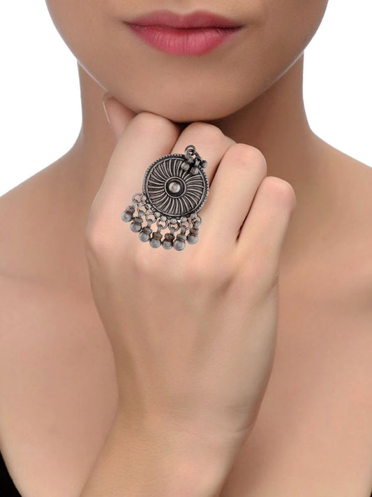 Women Handcrafted 92.5 Sterling Silver Oxidised Adjustable Ring