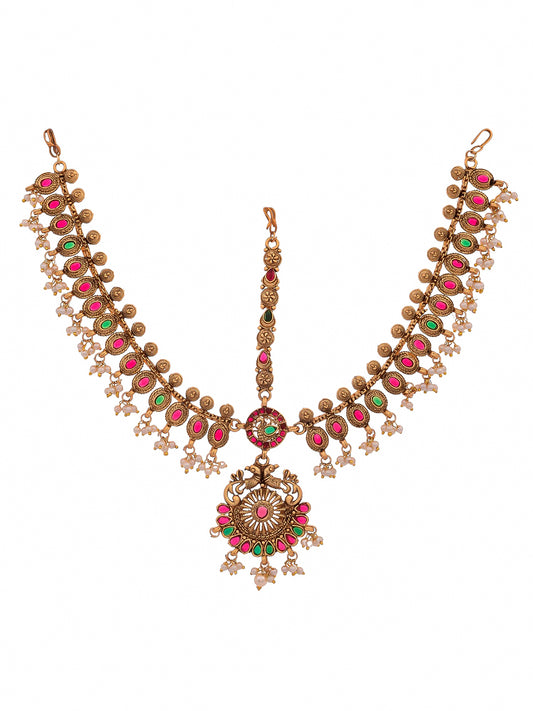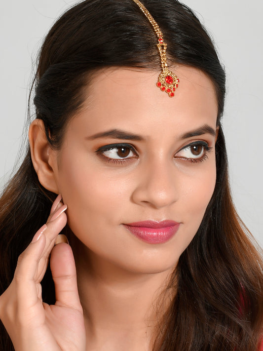 Traditional Red CZ Maang Tikka | Head Jewellery