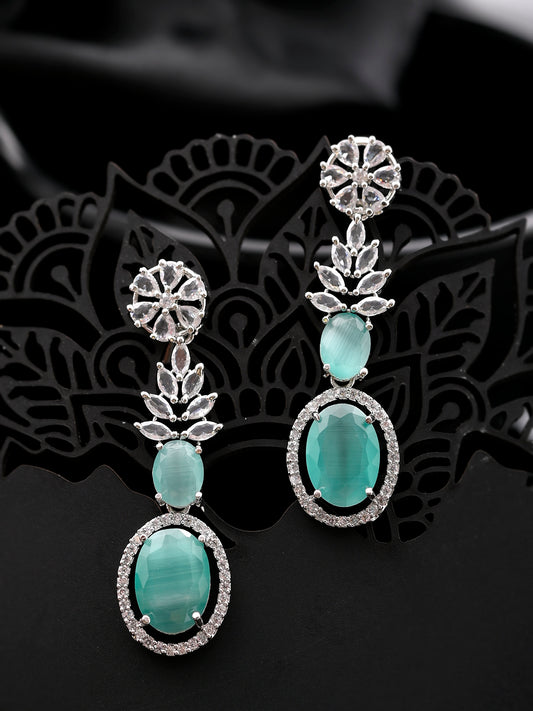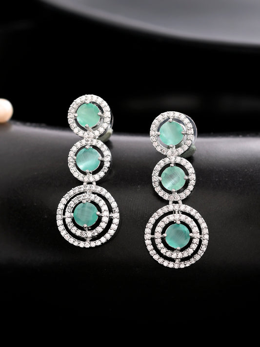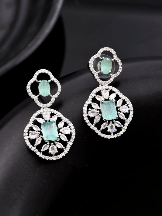 Trending Silver Plated Mint Green American Diamond Drop Earrings