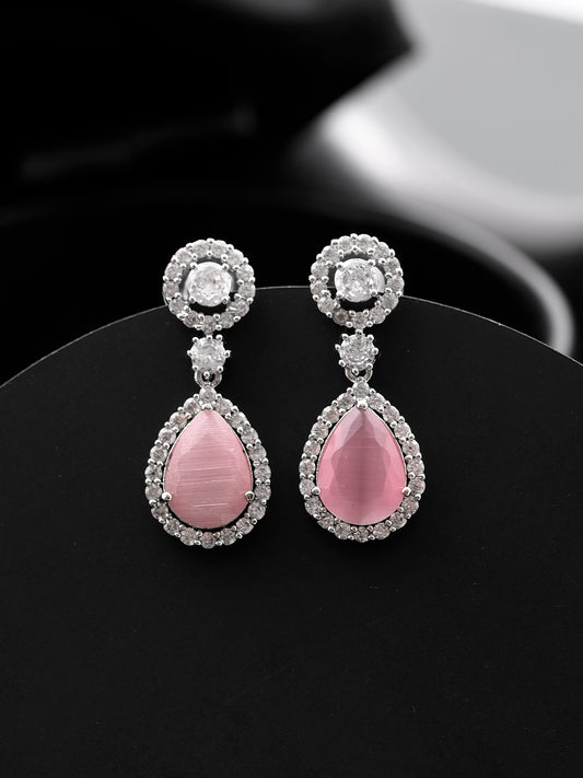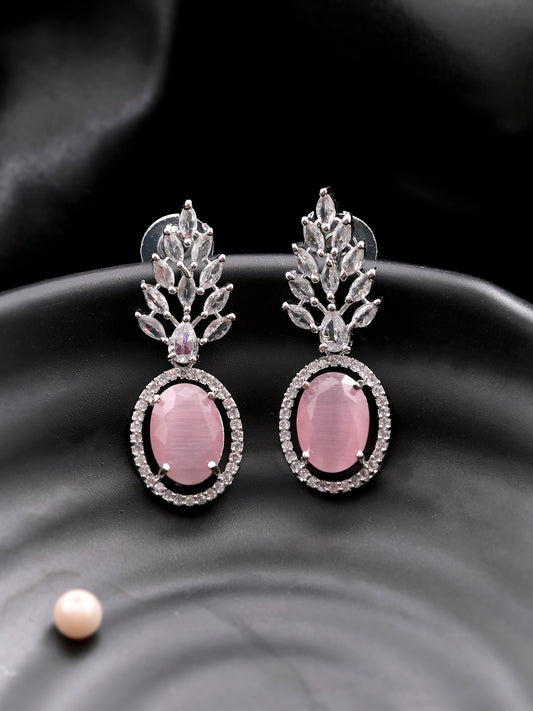 Trending Silver Plated Pink American Diamond Drop Earrings For Women