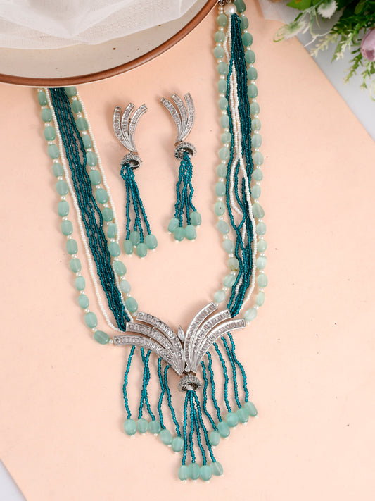 Tranding American Diamond Jewellery Set With Artificial Beads Necklace For Women
