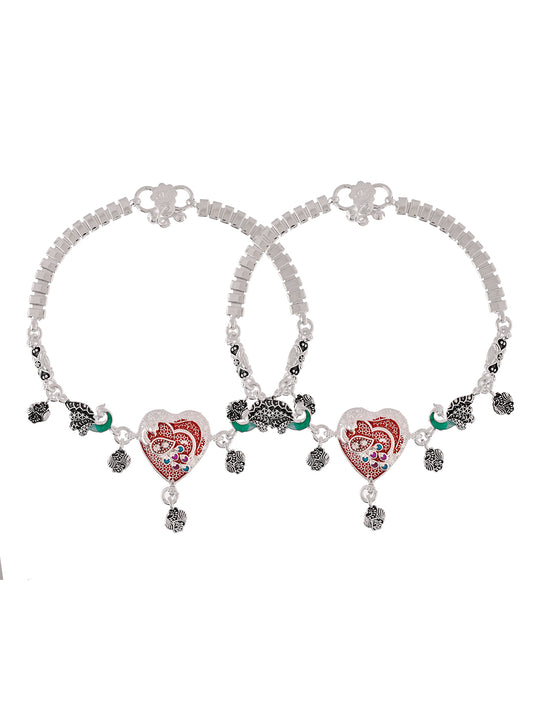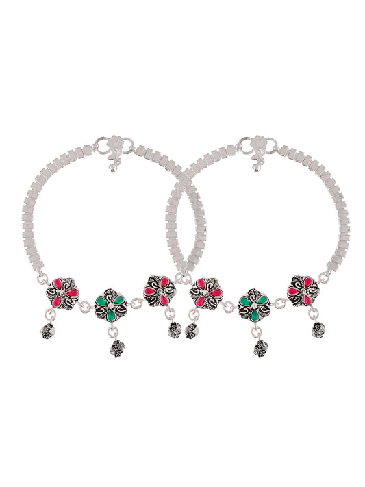 Silver-Plated Enamelled Anklets | Traditional Payal For Women