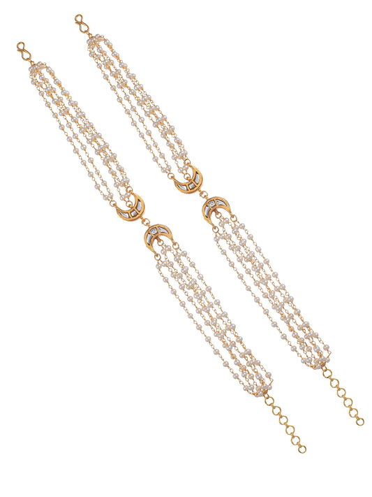 Gold-Plated White Kundan-Studded Pearl Anklets For Women