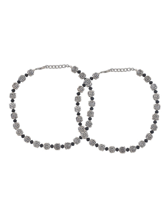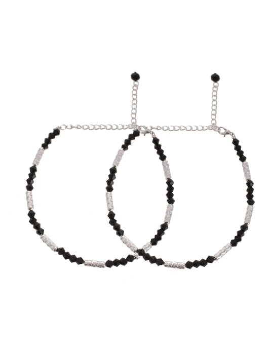 Silver Plated Black Beads Anklet For Women & Girls
