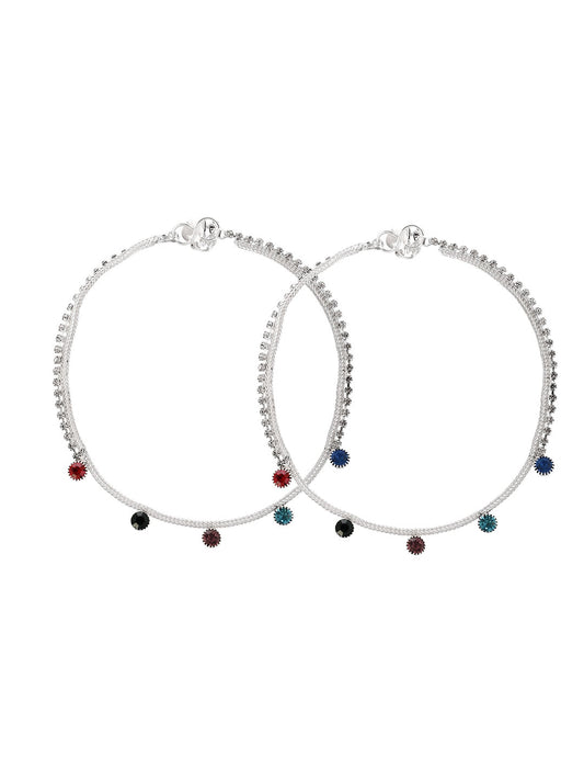 Silver-Plated Stone-Studded Anklets For Women