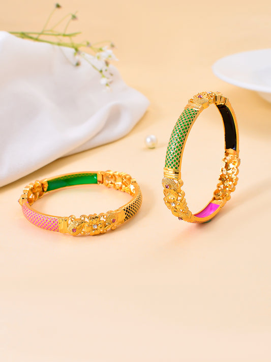Set of 2 Gold Plated Green AD Stone Studded Handcrafted Bangles