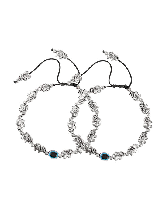 Silver Plated Oxidized Evil Eye Anklet For Women