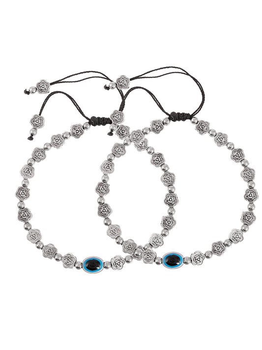 Silver Plated Oxidized Evil Eye Ankle Bracelet For Women