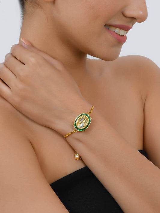 Ethnic Handmade Thewa Kundan For Girls & Women Gold Plated Bracelet