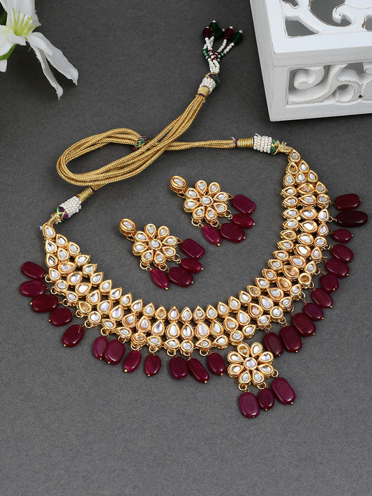 Traditional Bridal Polki Kundan Jewelry Set | Choker & Earrings For Women